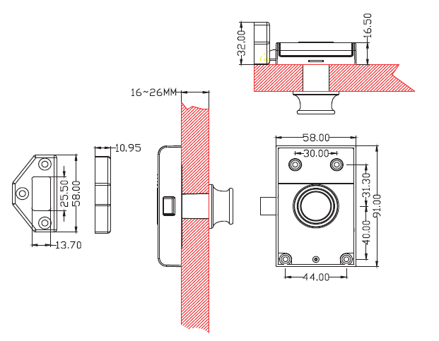 30 mm (約1元硬幣大小),鎖壳-58 x 91mm
